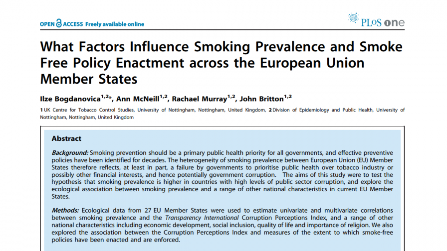 This study aims to assess public sector corruption and other national characteristics and it's potential association with higher smoking prevalence in EU member states.