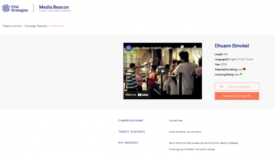 The ad from Bangladesh also has an accompanying press release, "New Campaign Urges Bangladeshis to Support Smoke-Free Laws" to support the mass media campaign.